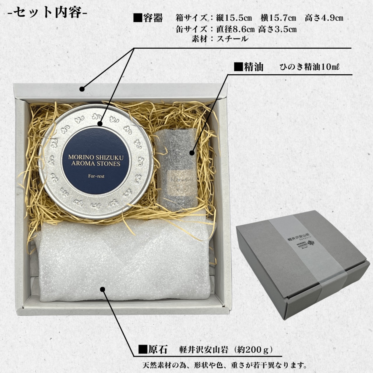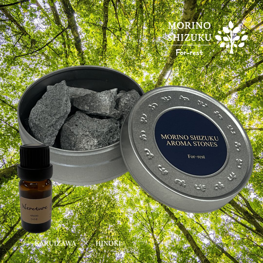軽井沢安山岩×ひのき精油 【MORINO SHIZUKU】原石アロマセット