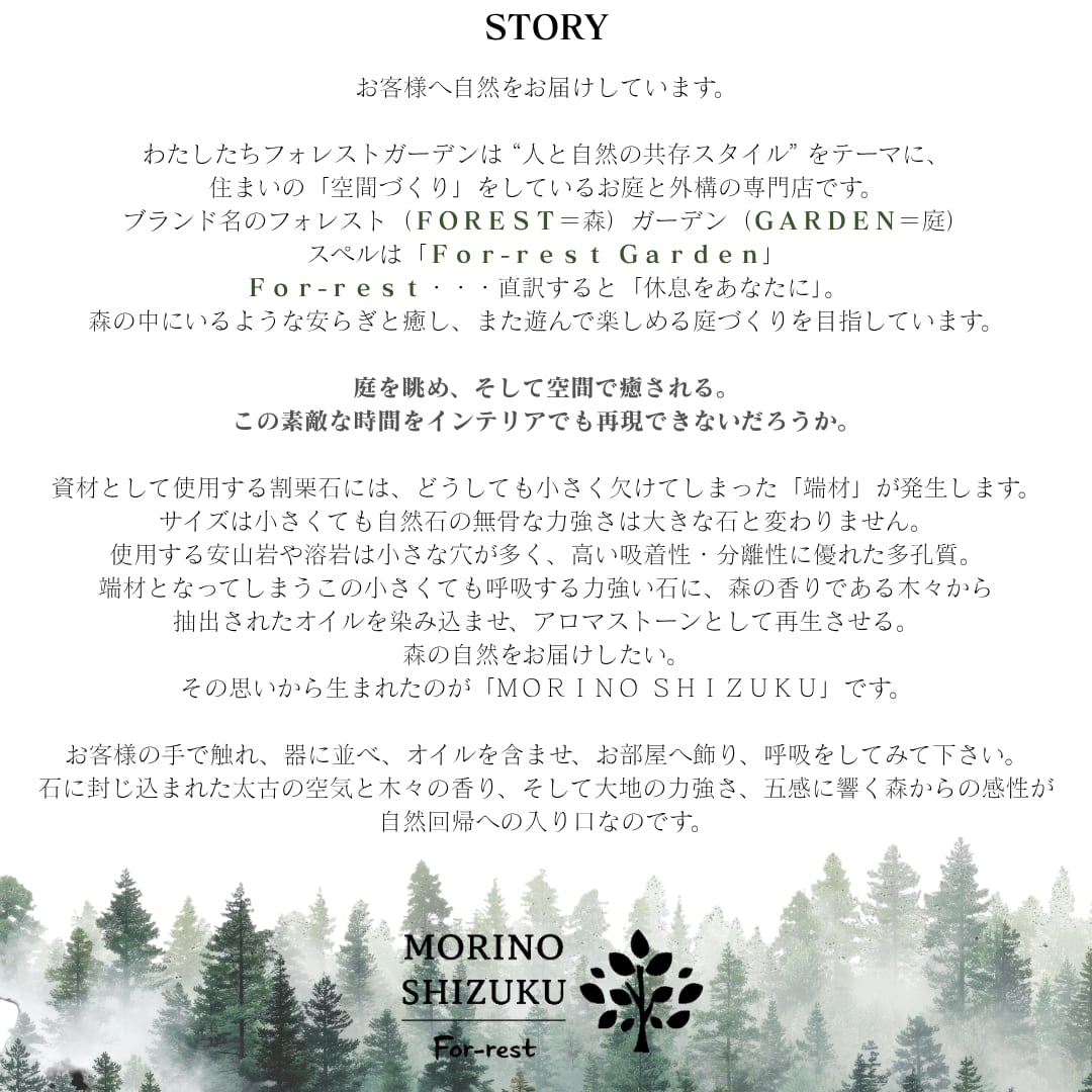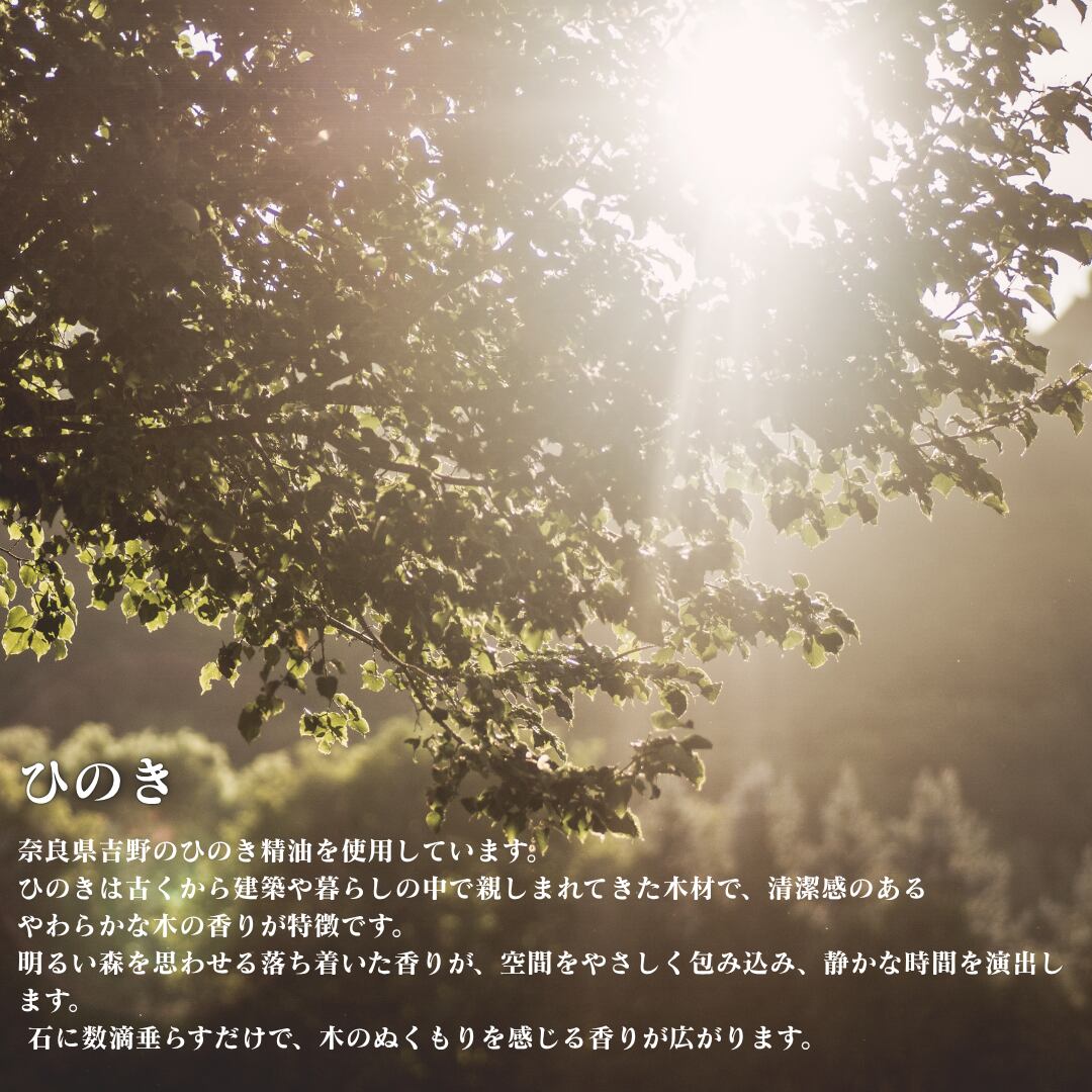 石に精油を数滴垂らすだけで、森の香りがやさしく広がります。